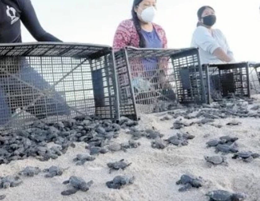 Un gran número de mujeres de la comunidad seri se dieron a la tarea de coordinarse con jabas y redes para lograr liberar la madrugada del jueves 22 de octubre del presente año, 549 tortugas golfinas (Lepidochelys olivácea), mientras el día viernes 720. Logrando un total de mil 299 especies.