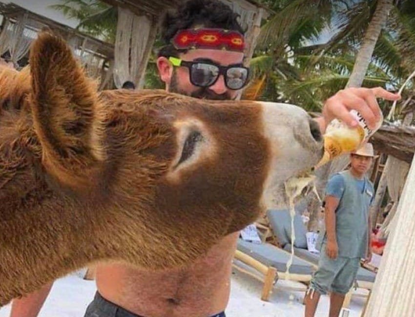 Hoy en pleno siglo XXI y aún durante la pandemia somos testigos de cómo algunas empresas del sector turístico de Quintana Roo, en México, más específicamente de un hotel en Tulum, se vale de un pobre burro al cual los turistas dan bebidas embriagantes hasta verlo caer de borracho y no se tientan el corazón en anunciarlo como atractivo para los extranjeros.
